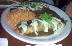 All of the enchilada entrees come with beans and rice and a special sauce to go with the food. With two full enchiladas along with rice and beans, the platter easily satisfies anyone.