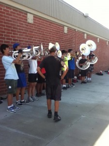 “We’re doing a lot better than last year,” says tuba section leader James Elder. “We’re learning drill and music faster, the show design is great, and the rehearsal etiquette is a lot better.”