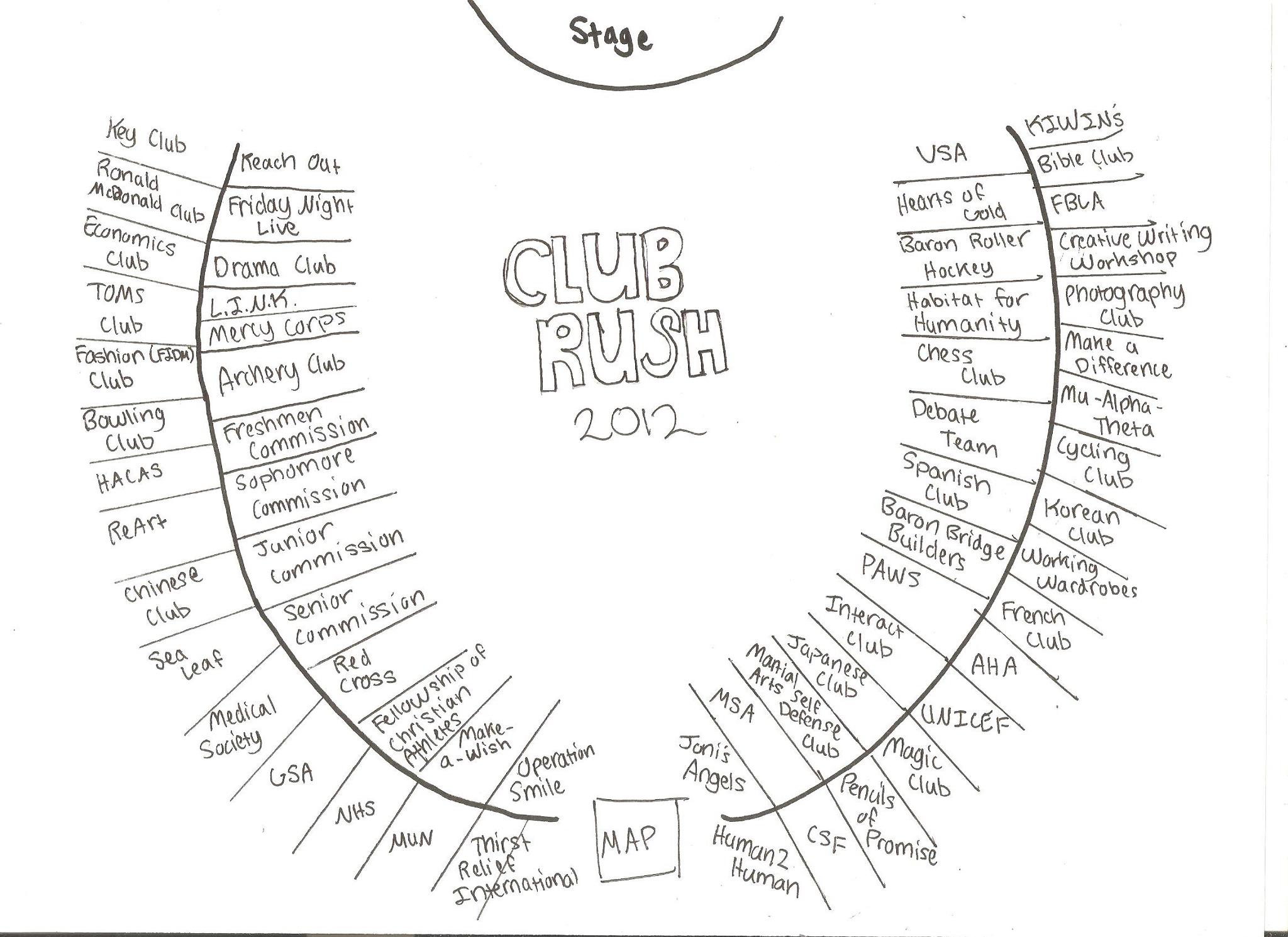 Club Rush 2012 Map Announced September 11, 2012September 20, 2012 Adrien Ha ASB released the official club map for Club Rush 2012 Monday night. Clubs will attempt to recruit new members during the annual event, which will occur this year during lunch from Sept. 12 to 14.