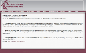 Auditions for the May 10th District Wide Talent Show were held last Sunday in the Music Media Entertainment Technology Department’s TV studio.