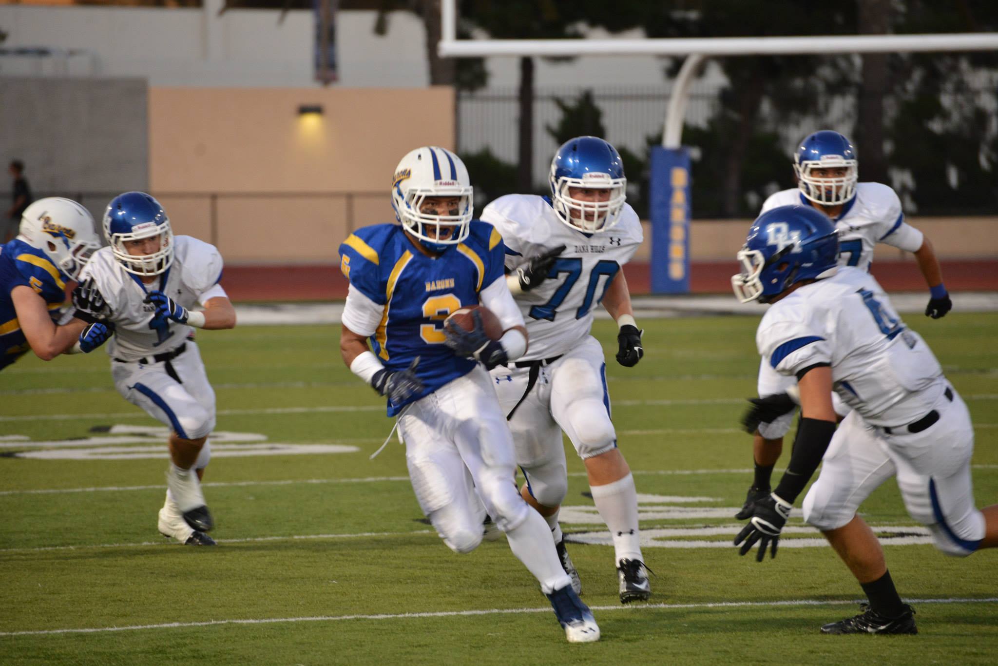 Varsity football team squared off against Dana Hills High School and won in a close game 24-21 Friday night.