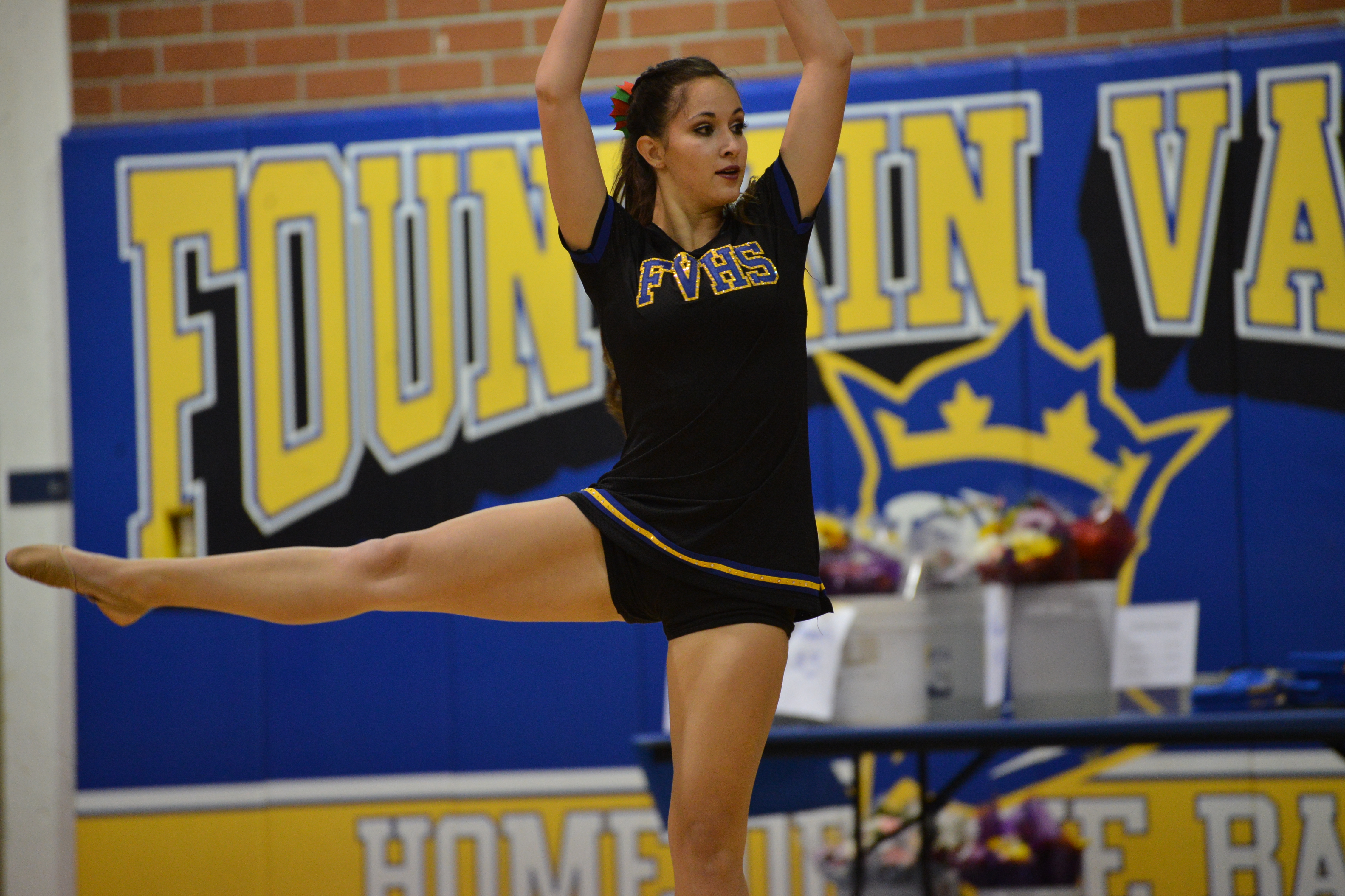 The gym was divided by a blue curtain, leaving the dancers on one side and a packed audience awaiting the performances on the other. The pieces performed would give the spectators a taste of what the Dance Team would be performing for their up and coming season, as well as pieces that were performed at the Glow Show, Homecoming Assembly, and the Tree Lighting Ceremony.