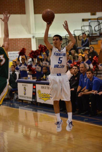 The first quarter looked optimistic for the Barons, as Jordan Venters (’14) and Christopher Meyers (’15) sunk a three-point shot and a layup in the first minute of the game. Cory Bitzer (’14) came charging out of the gates with 8 points in the first quarter, dropping two three-pointers into the basket mid-quarter. Other players followed suit, as Calvin Le (’16) put up 3 points of his own from outside on the scoreboard at the end of the first. Turnovers by Fountain Valley were nearly compensated by great rebounds, both defensively and offensively, and the quarter ended with a score of 16-17.