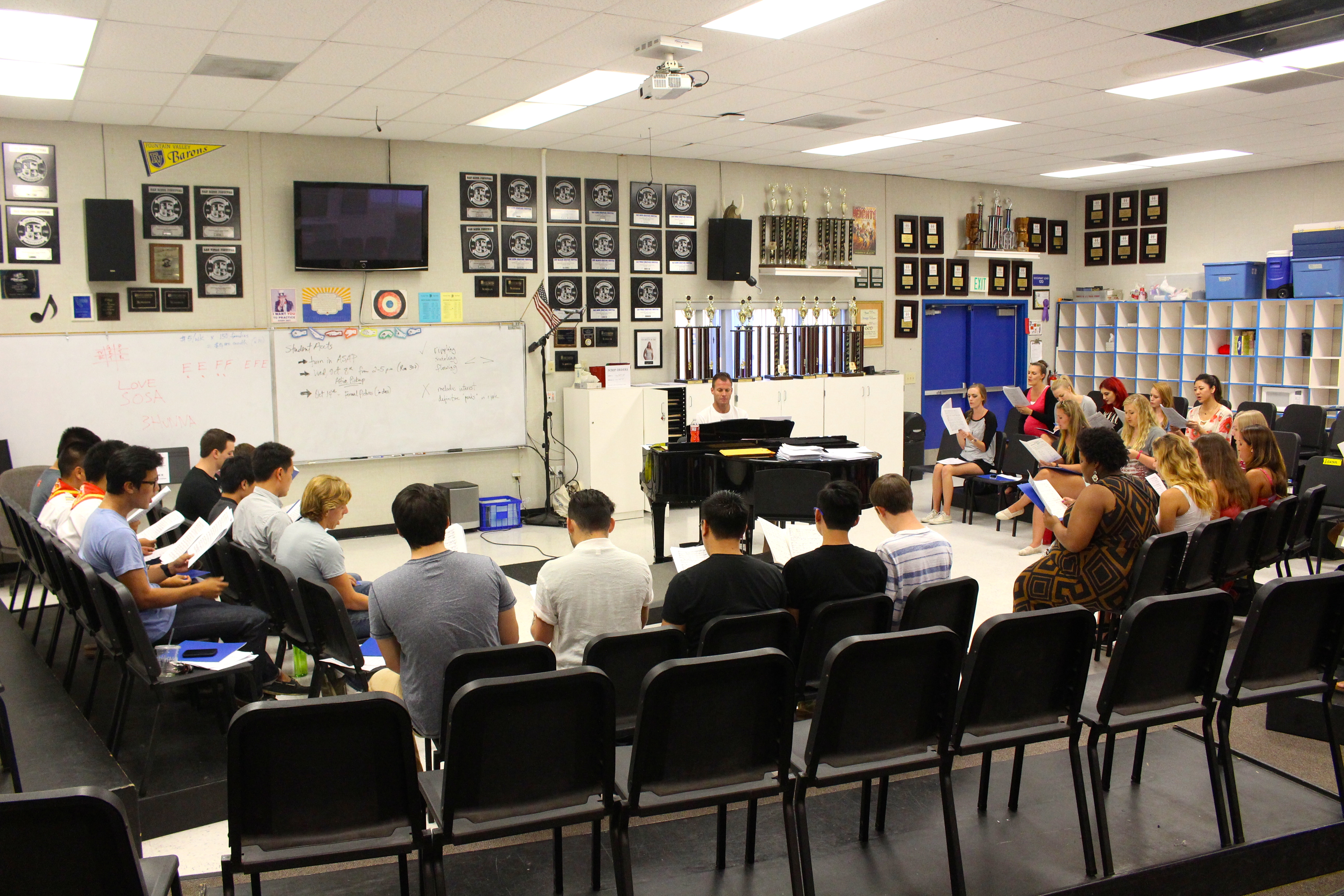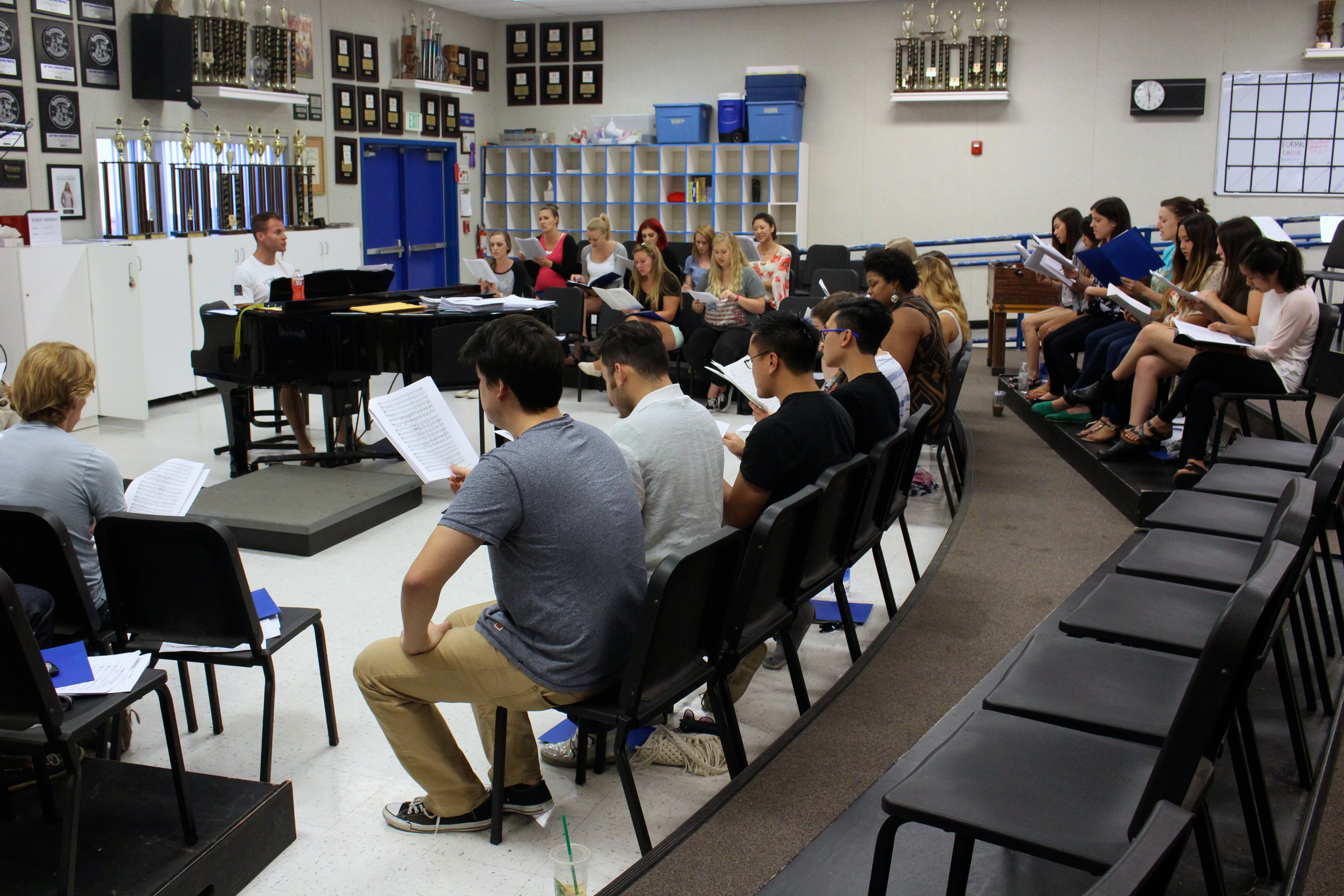 Some Alumni join Mr. Tison at the second rehearsal for the group. photo by Heather Kim