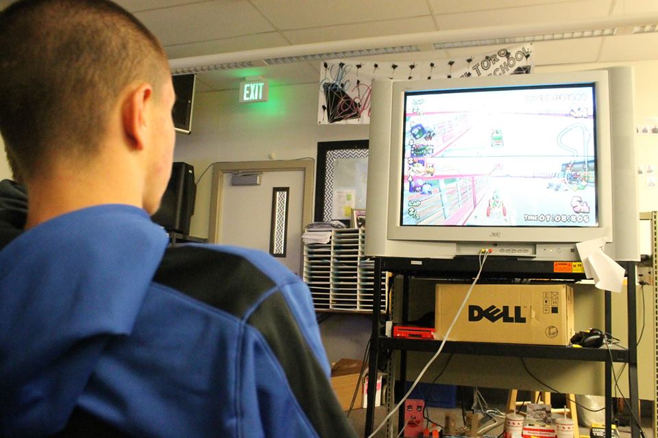Student competes in the "Mario Kart" tournament held by FVHS Virtual Enterprise. Photo by Andy Kim