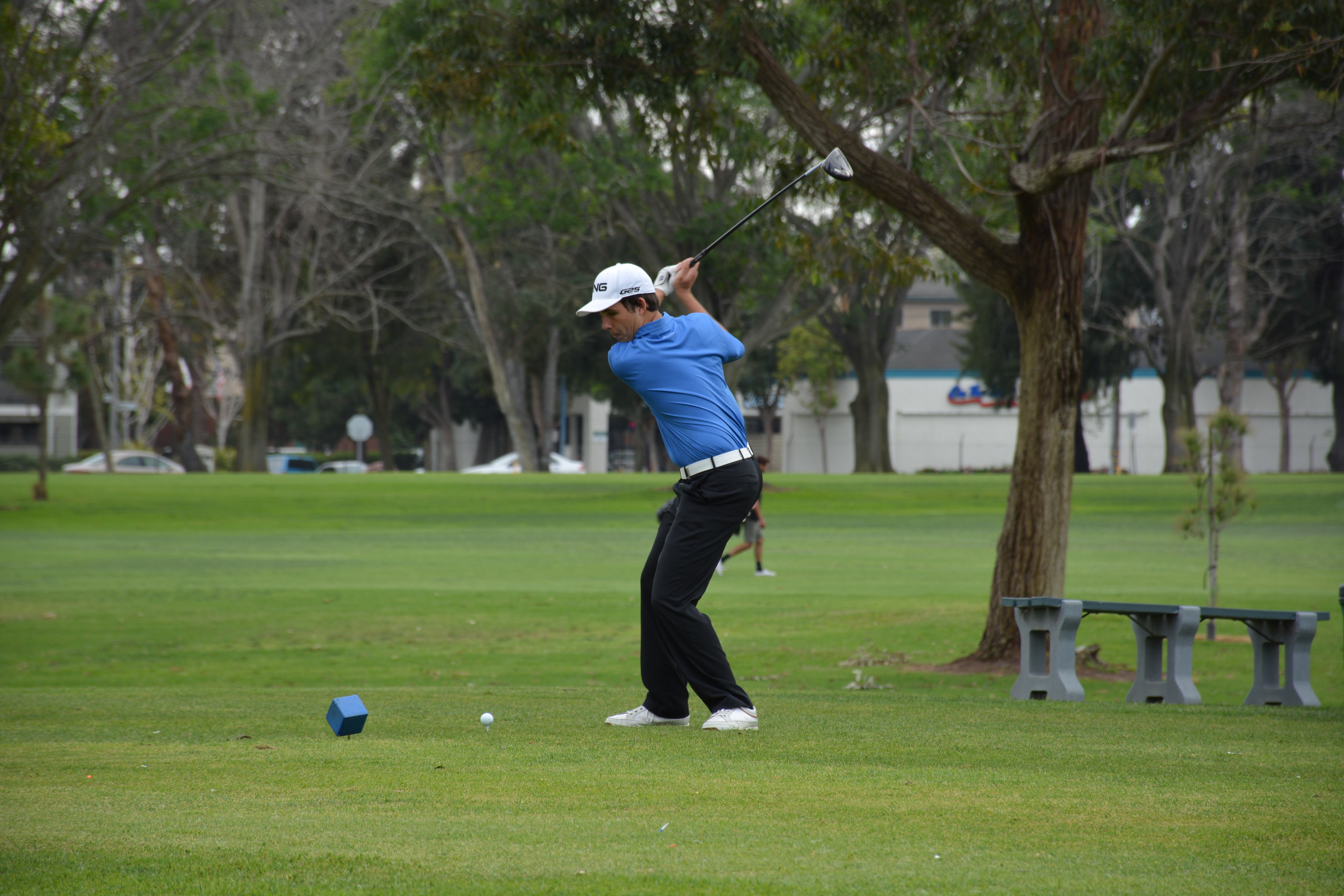 Chris Feltman (’16) shoots towards the green. Photo by Winn Moo