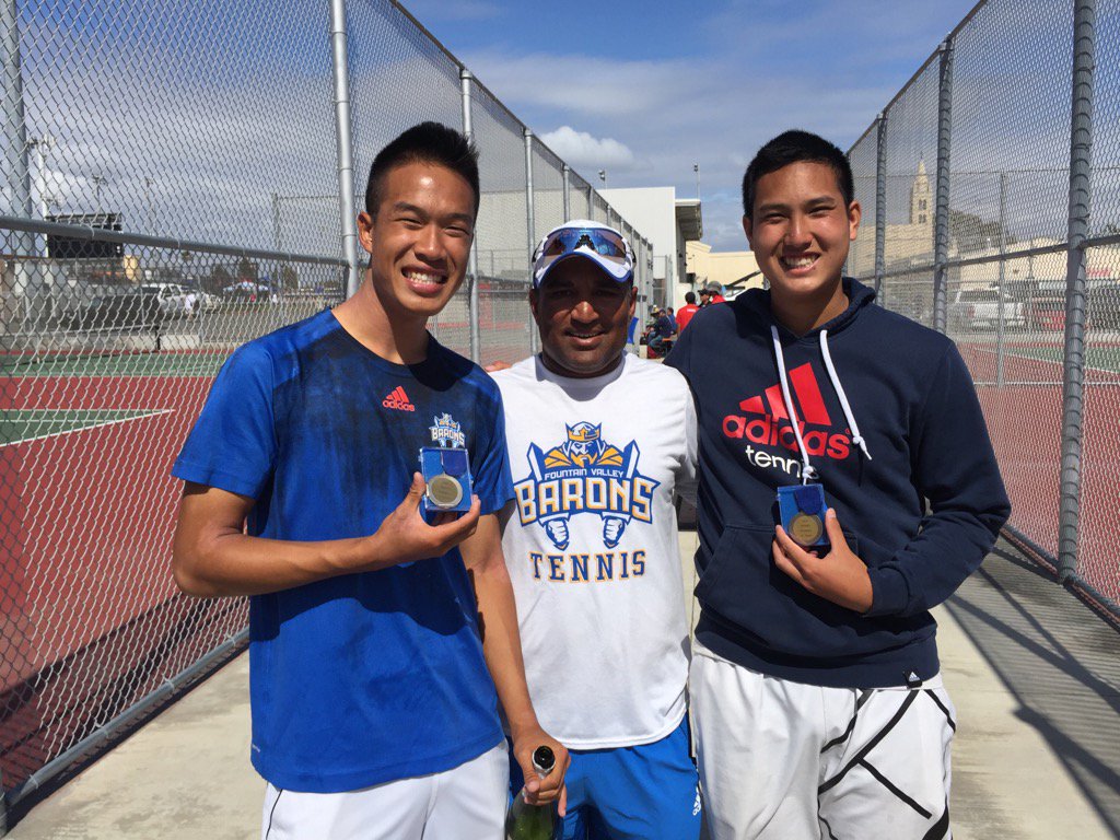 They played against Lee and Schafer from Newport Harbor High School in the doubles final round, winning two out of three matches. Their scores from the first two matches were 3-6 and 6-0, winning one and losing one, before managing to pull through and win the last match with a tie breaker at 10-8.