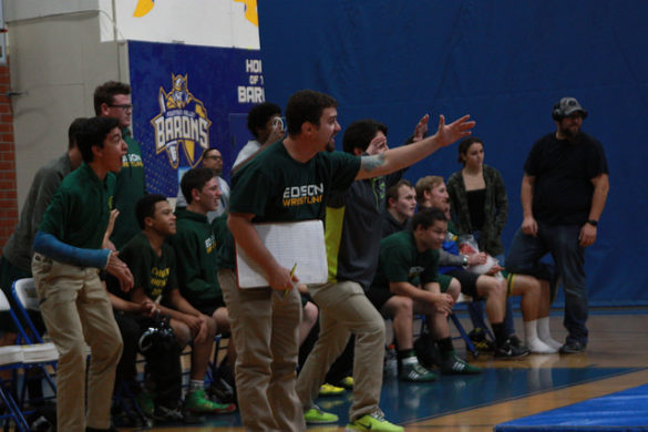 Against Edison, Nozaki went up for his first match in the 113 pound weight class. During his dual, Nozaki’s opponent came close to pinning Nozaki, but he was able to get back up and win three points for the Barons.