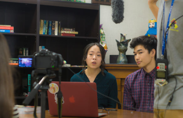 Cathy Bui (’17) working with BBN to continue her passion of entertaining the school. Photo by Jake Winkle.by Tejas Chadha, Staff Writer