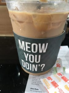 If you’re looking into adopting a cat, going to Crumbs & Whiskers can help you find a new fluffy friend to take home with you. In addition with your payment, you are also helping the next person who comes in adopt a cat as well. Ordering coffee or tea can also help the organization; their coffee drinks are really good, along with their cookies and treats you can buy.
