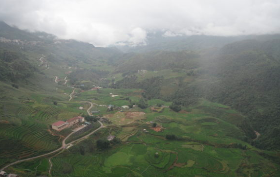 View while up on the cable car in the on the way to the “rooftop” of the Indochina summit,