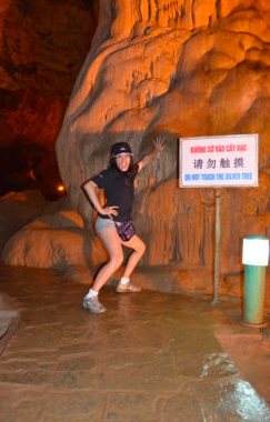To enjoy the mountains, caves, and rivers of Tam Coc we did what typical tourists do: take a languorous row-boat ride rowed by a local. For a bit of fun, I got to wear a rice hat (thanks to our bus driver) for a true rowing experience. Even though it was all fun and games, my stupidity got the best of me. After stopping by an island area where the set of “Kong: Skull Island” was filmed, I walked ahead of the boat driver and stepped in the boat by myself thinking that it was tied down, but I started to float away. Luckily I didn’t drift too far and I grabbed a paddle and held it out to the boat driver so he could pull me to the dock.