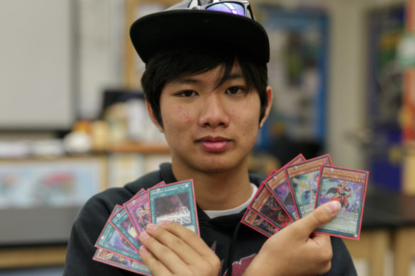 Junior Tony Tran, president of Duelist Sanctuary (Yugioh Club), holding up his pristine Yugioh cards. Photo by Vinh Nguyen.By Theo Vuong, Staff Writer