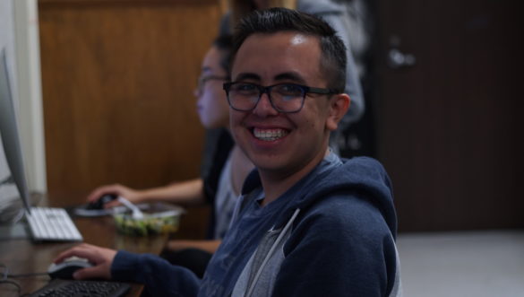 “Before I joined I didn’t know anything about cameras. But since I’ve joined using them has become very simple,” said Jake. “I’ve also learned how to use Premiere Pro… which can look intimidating at first, but once someone shows you a few things, it’s very very intuitive. A part of the learning process is having experienced people teach me how to do these things starting with the easiest elements first.” Jake quickly learned the basics of cameras and editing with Premiere Pro quickly within joining the class. He explains that he’s learned a lot of new things just from asking the experienced members.
