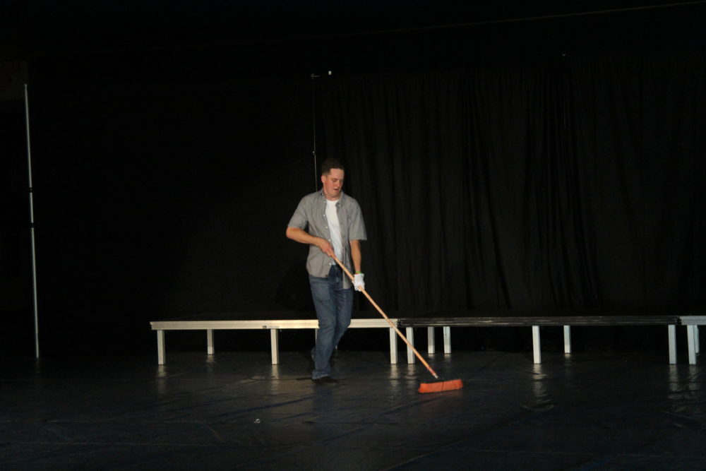 Michael Piepmeyer shows off his sweeping skills to the tunes of various songs.