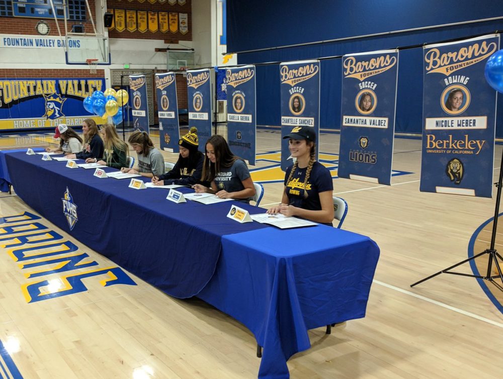 At noon on Wednesday, seven senior girls completed their commitment to college athletics in the National Letter of Intent Signing Day ceremony that took place in the FVHS gym.