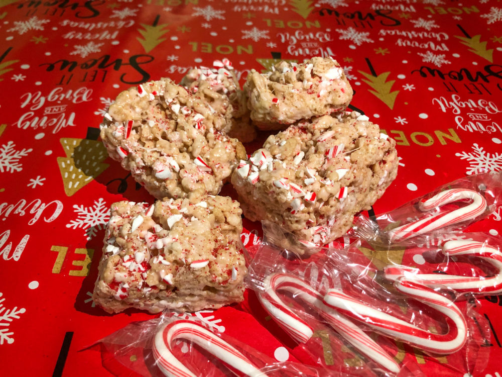 - Add in Rice Krispies and crushed peppermint. Stir well.