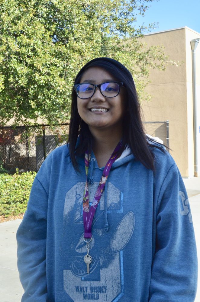 “I think one of the worst trends was probably the whole mustache-YOLO-swag thing of like, 2010 to 2013. It made for good marketing but it was kind of dumb- it was really dumb, actually. I think the best trend, it’s a little cringy, but I think it was those really obscure memes, with like the cursed emojis. Those things that don’t make sense, but make us laugh because they somehow come together in a really weird way,” says senior Charmaine Cabral. Photo by Elyssa Phan.