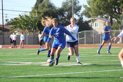 Senior Alyssa Rubio kicks the ball towards Fountain Valley. Photo by Haneen Bany-Mohammed.
