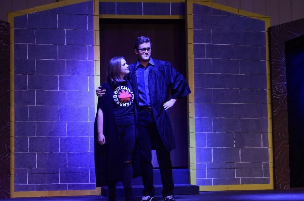 During their dress rehearsal, unique outdoor spotlights illuminate the stage, but the chemistry between the cast members doesn’t need stage lights to be bright. Despite its small stature, the amphitheater is brought to life by the techs, the props, the elaborate costumes and the lights.