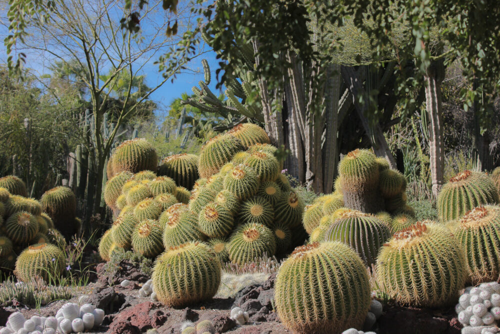 Pumpkin-shaped golden barrel cacti are packed together all around the garden. There are over 500 and can be over 85 years old.