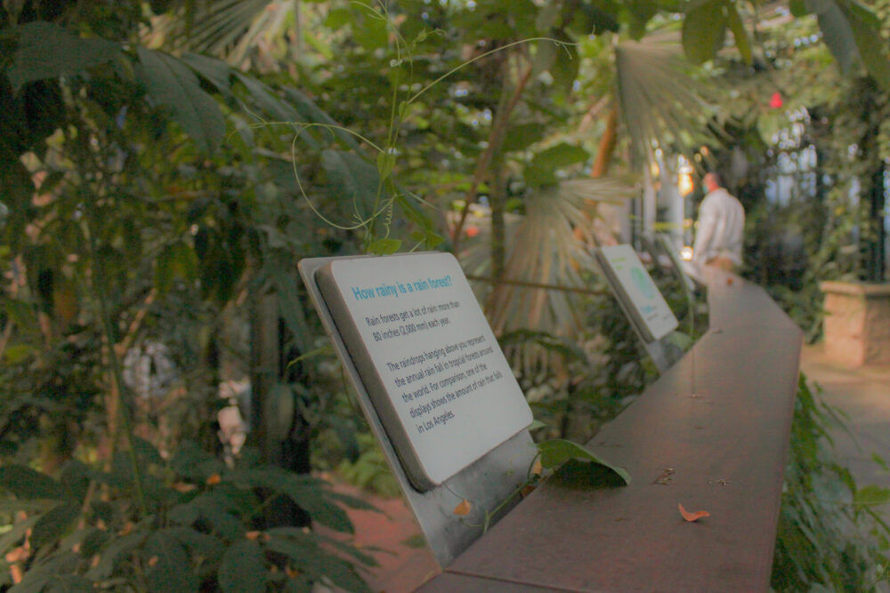 Rainforest facts are displayed across the Conservatory for visitors to read.