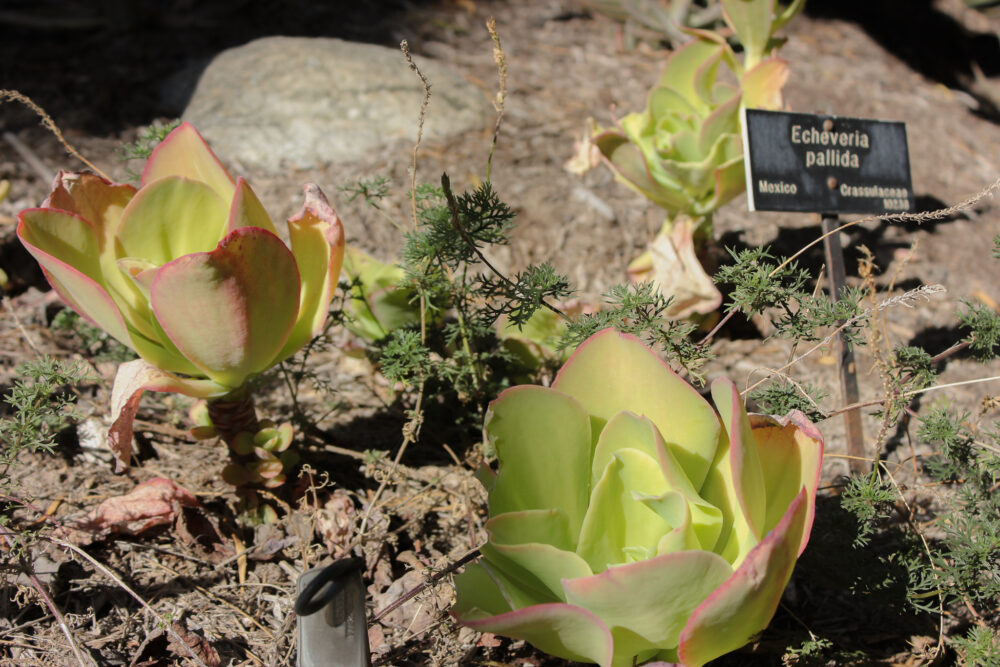 Small echeveria pallidas and other exotic plants sprout across the desert garden, which is a dream for plant lovers.