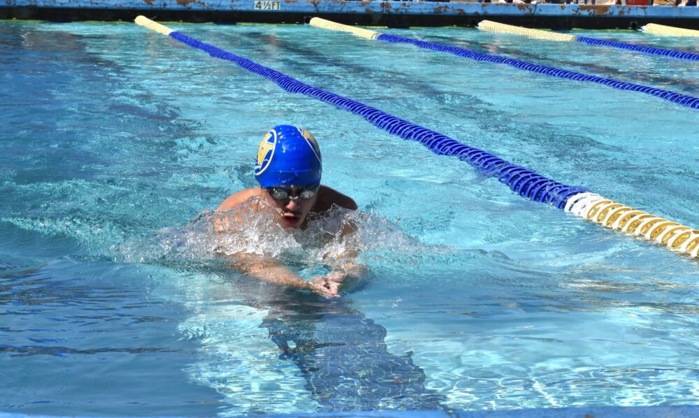 Fountain Valley High School (FVHS)’s swim team competed against the Newport Harbor Sailors on Tuesday, Apr. 19. The Barons ultimately pulled through with a narrow win with a final score of 496.5 points to 480.5 points.