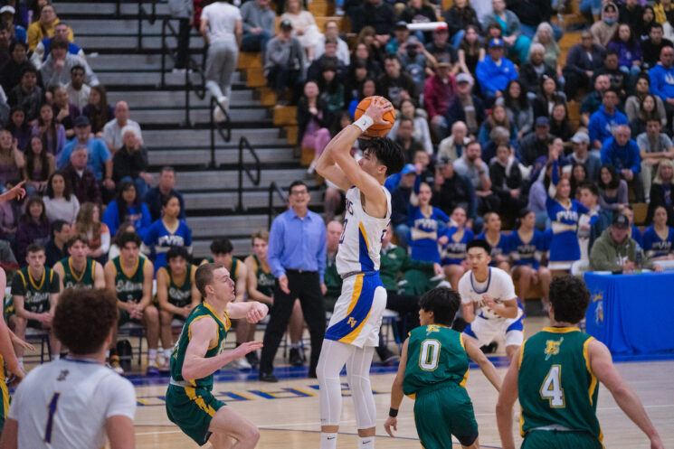 The second quarter commenced with Edison making a quick layup, after which sophomore Aaron De Santiago pulled up for an elbow jumper. The Edison offense was on point, making a pair of three-pointers and a layup to go up 11-21 with 5:54 remaining in the first half. Fountain Valley kept playing hard, however, as Gray made a three-pointer, then followed it by rebounding an Edison miss, pushing the ball up, and scoring a fadeaway free-throw line jumper to cut the lead to five. Edison was over the foul limit late in the first half, allowing Fountain Valley to shoot free throws and keep cutting into the lead. Following an Edison three-pointer, senior Ethan Huynh made a three-pointer in response, assisted by Gray. With 20 seconds left on the clock in the first half, Garcia rebounded a missed shot by Gray and kicked it out to an open Huynh, who scored a three-pointer from the wing, beating the buzzer and cutting the Edison lead to three heading into the second half.