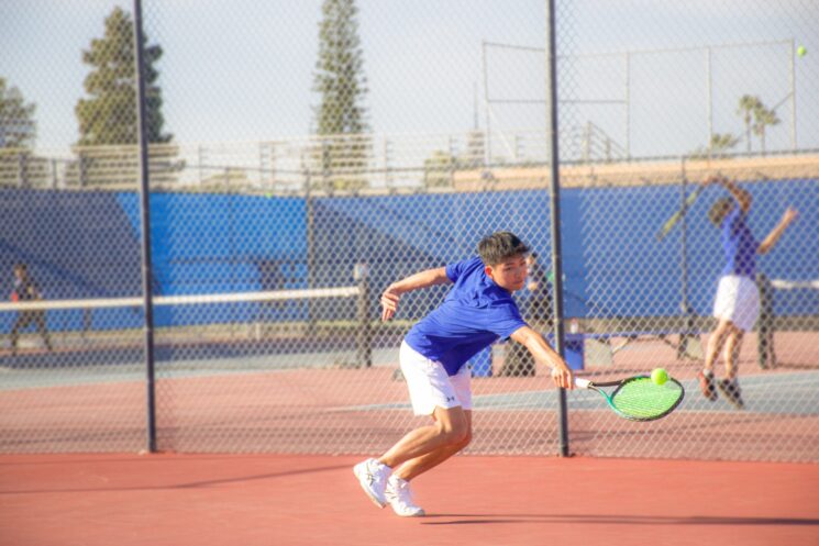 The Fountain Valley High School (FVHS) boys’ varsity tennis had an extremely close match against the Valencia High School (VHS) Tigers on Thursday, Mar. 9, with both schools winning nine matches each (9-9). However, the Tigers won 77 games, while the Barons won 75 (75-77), securing VHS the victory.