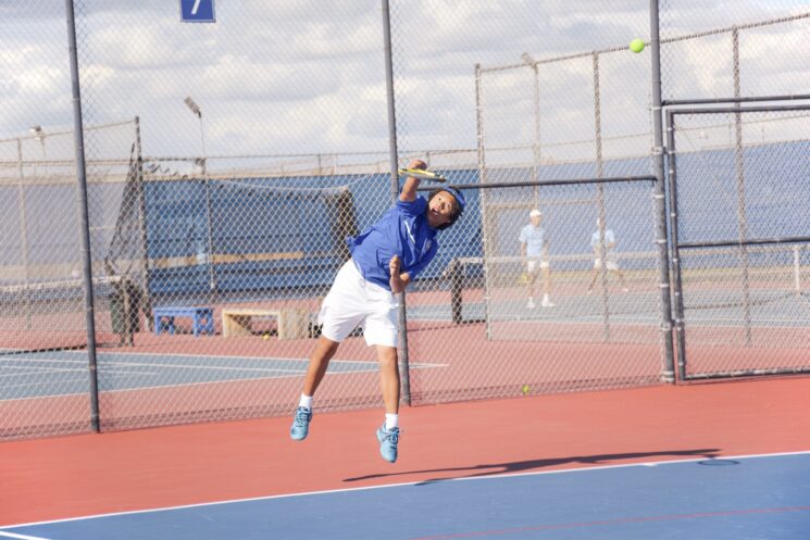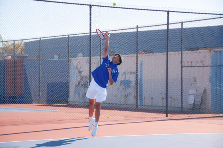 Singles No. 1, senior captain Alan Ton, lost the first set 4-6 but came back to win his next two sets 6-3 and 6-1. The National All-American player had a tough opponent, but Ton’s lightning-fast serves and skilled gameplay mesmerized onlookers. With a lob shot that soared over the CDM player’s head when the player was up against the net, Ton scored some clever points.