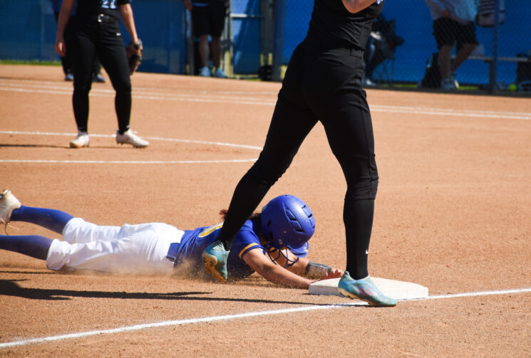 Freshman Rylee Jimenez slides to steal third base against the Sea Kings. Photo by Uy Pham.