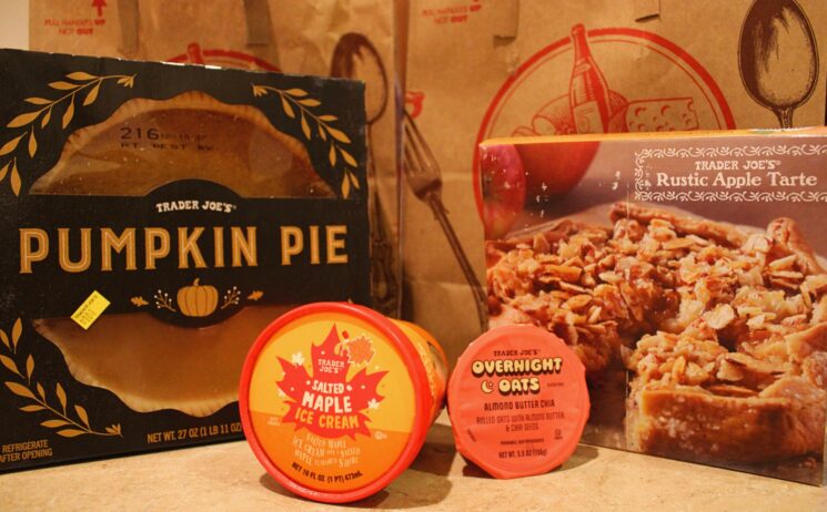 We fell for it. This year we decided to try some of Trader Joe’s autumnal treats. These treats included the Pumpkin Overnight Oats, Rustic Apple Tarte, Salted Maple Ice Cream and the Pumpkin Pie.