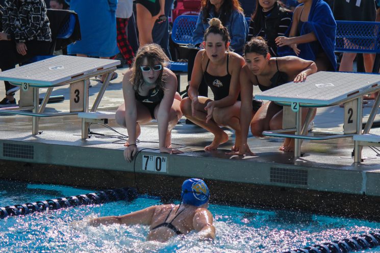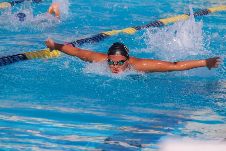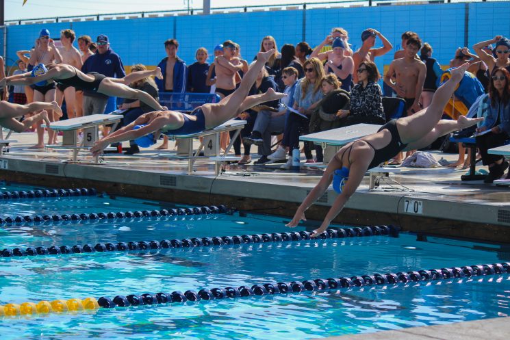 In an exciting 50 yard freestyle, Leyna Nguyen’s time of 24.47 and Balta’s 24.93 landed them in second and third place, only behind LBHS’s star freestyler, Ava Knepper. The boys also found success in this event, with junior Ranen Herman earning a decisive win with a time of 21.71. Huynh secured more valuable points for the team with his fifth place finish.