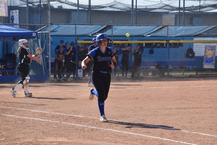 At the top of the eighth inning, the Scots hit a ground ball, and the Barons’ right fielder missed it under her glove. The next batter up hit a sacrifice fly ball deep into the center field and the runner from third-base scores. This brought the score to six to seven, in Upland’s favor.