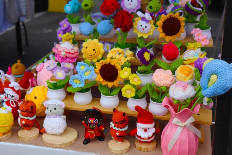 The swap meet additionally serves as a great place to start a small business. Shoupan Cai and his wife have turned to the swap meet to begin selling handmade crochet items. Their small stand has filled the flea market with bright smiles, beautiful flowers and bright colors.
