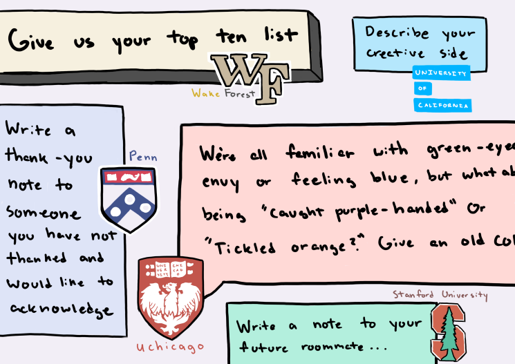 Some other prompts that are very similar to this one include Harvard’s roommate prompt and the University of Pennsylvania’s gratitude note.