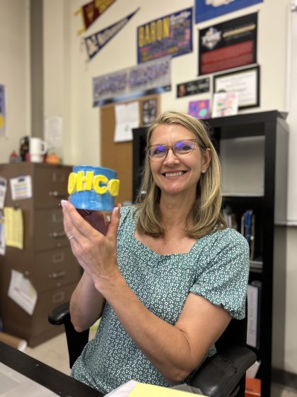 “A student made this for me in pottery class,” math teacher Jane Springer said. “it’s supposed to say ‘SOHCAHTOA’ to help remind them how to do trig but it says ‘OHCAHTOA’ because she then ran out of room for the ‘s.’ It’s just my favorite because I really like the student, and I think it’s funny.”
