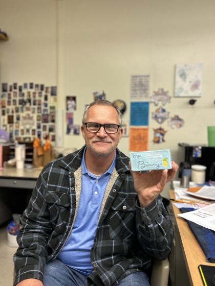 “It’s ceramic and has a bunch of sayings or pictures that represent me,” health teacher Bill Birinyi said. “It was done by a student back in 2018. There’s a picture of a pineapple and one of my quotes was ‘be like a pineapple, be sweet on the inside and wear a crown on top.’ [There’s] a picture of my family and my dog. [There’s a picture of] the subject I teach. They know I’m a baseball fan and ‘believe in yourself,’ something I always said. So, this was made out of someone’s heart for me. I will always cherish it.”