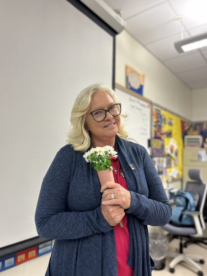 “So, a student gave me this flower bouquet because I listened to her [talk about] having a bad day, and she wanted to say thank you,” math teacher Marianne Karp said.