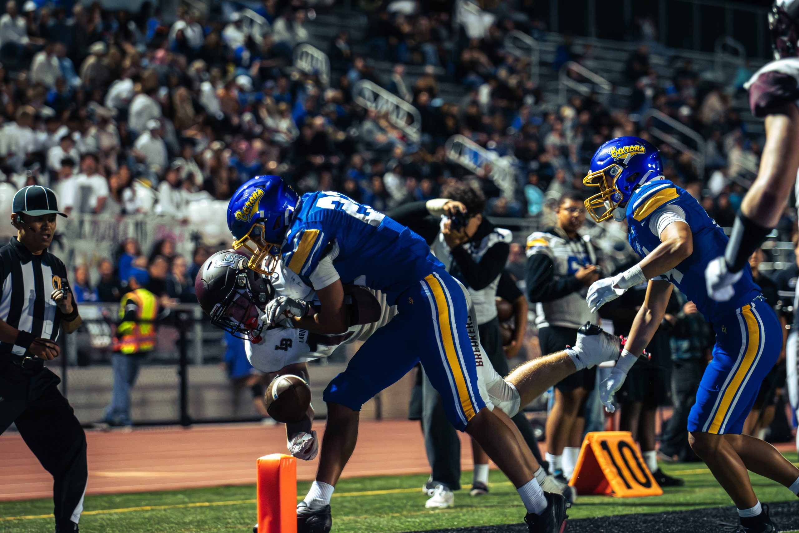 The Barons prevent the Breakers’ pass from being completed in the end zone. Photo by Leroy Tran.