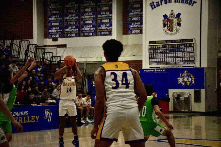 Senior Drew Chinchilla shoots from the mid-range. Photo by Sophia Bui.