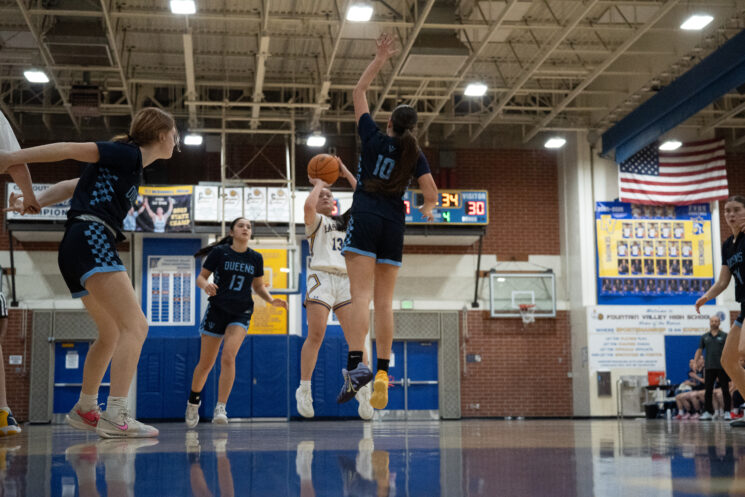 Senior Kailey Nishi shoots a three pointer. Photo by Justin Nguyen.