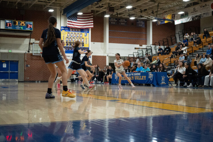 The third quarter began with tough defensive energy from the Barons. With 30 seconds left in the quarter, Hsieh forced a turnover that swung energy back to the Barons’ side; consequently, freshman Bailey Dinh swished a three-point shot, pushing FVHS’ score to 28 and electrifying the gym. Jones also continued to dominate defensively, managing key steals that disrupted the Sea Kings’ rhythm. Despite a few successful baskets from CDM, the Barons maintained their lead going into the final quarter.